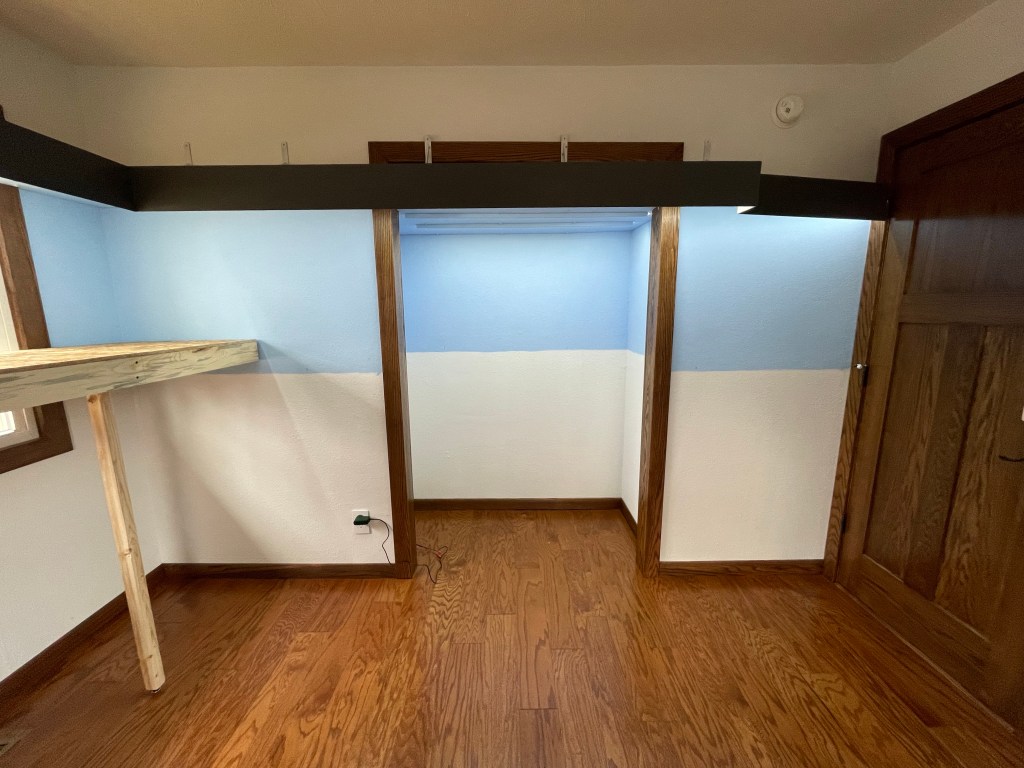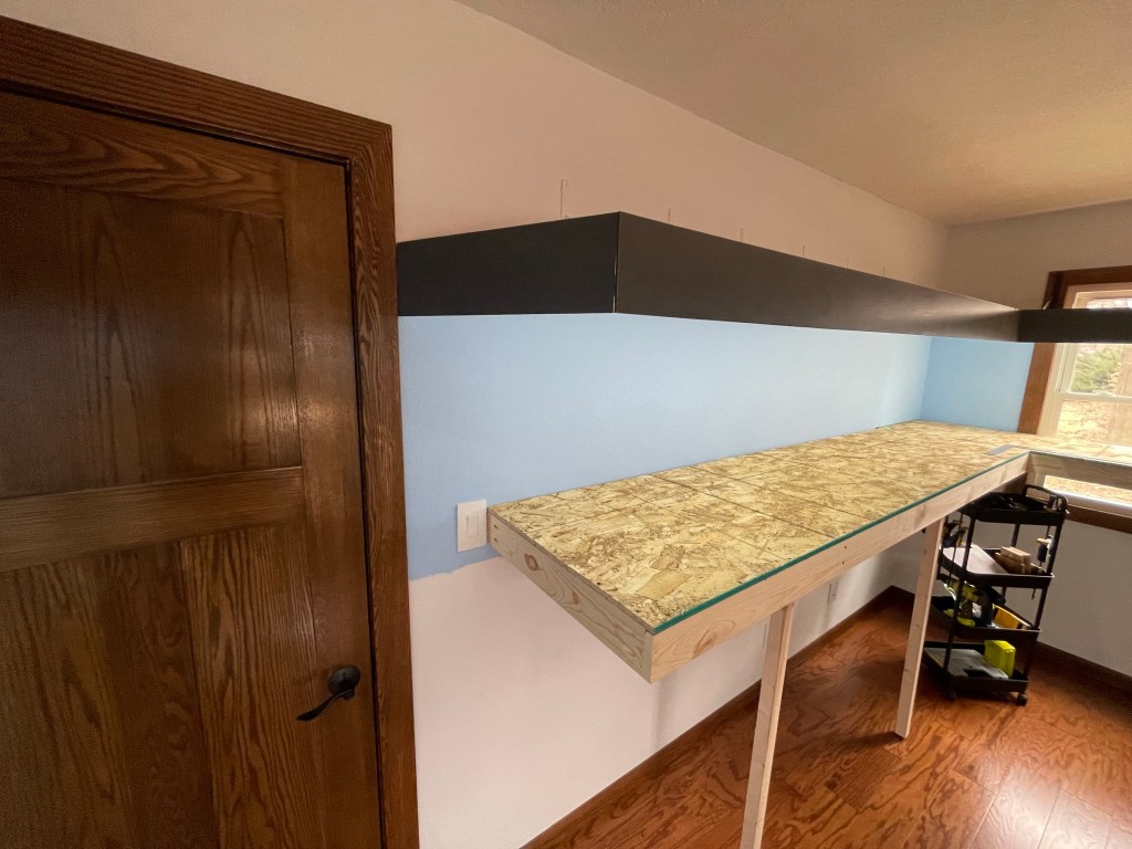 The last piece of the north bedroom valance fascia was installed yesterday as were the remaining LED strip lights. I am very happy with the results. I had intended to paint the fascia black but I found that the previous owners of the house left a full gallon of a graphite color satin paint. This paint isn’t used anywhere else in the house. It’s a little shiny for me but I can’t beat the price.