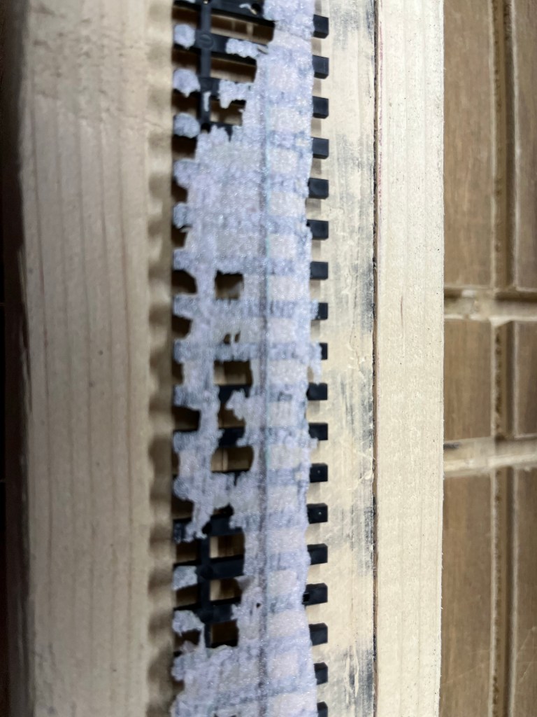 The glue and foam residue that remains on the underside of the track has to be removed.
