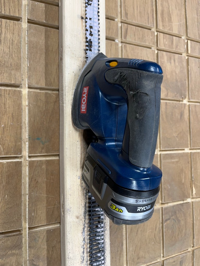 To start the cleanup, I take my cordless sander and sand off the bulk of the residue.