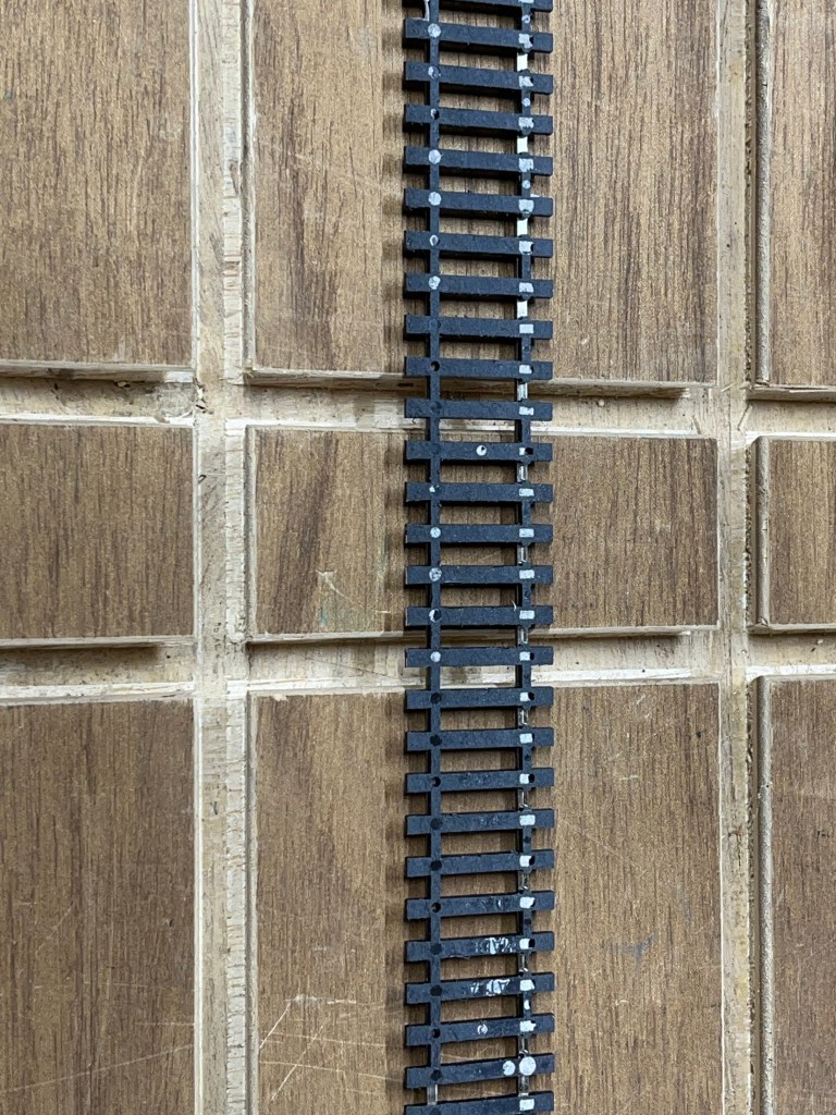 I’m back!! The corn is super tall here in Indiana and after 4 months away doing stuff around our new home, I’m ready to start laying track on the long completed benchwork. Before I can start I need to prep the hundreds of feet of Atlas code 100 flex track I had salvaged from the old railroad.