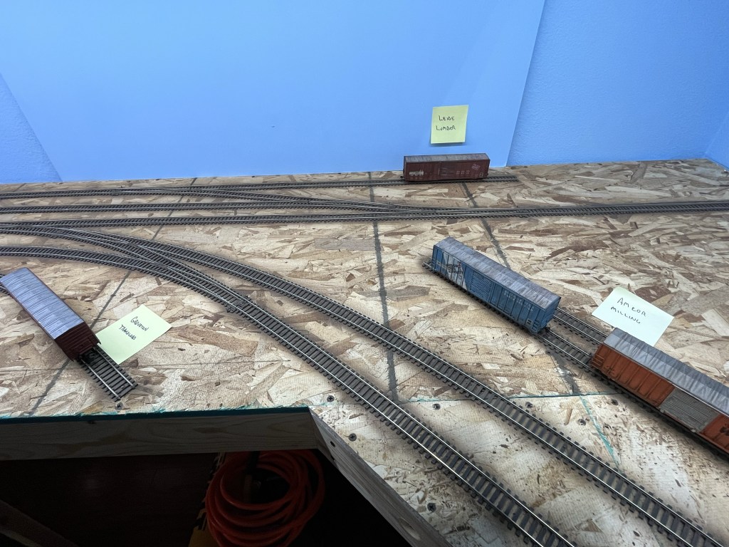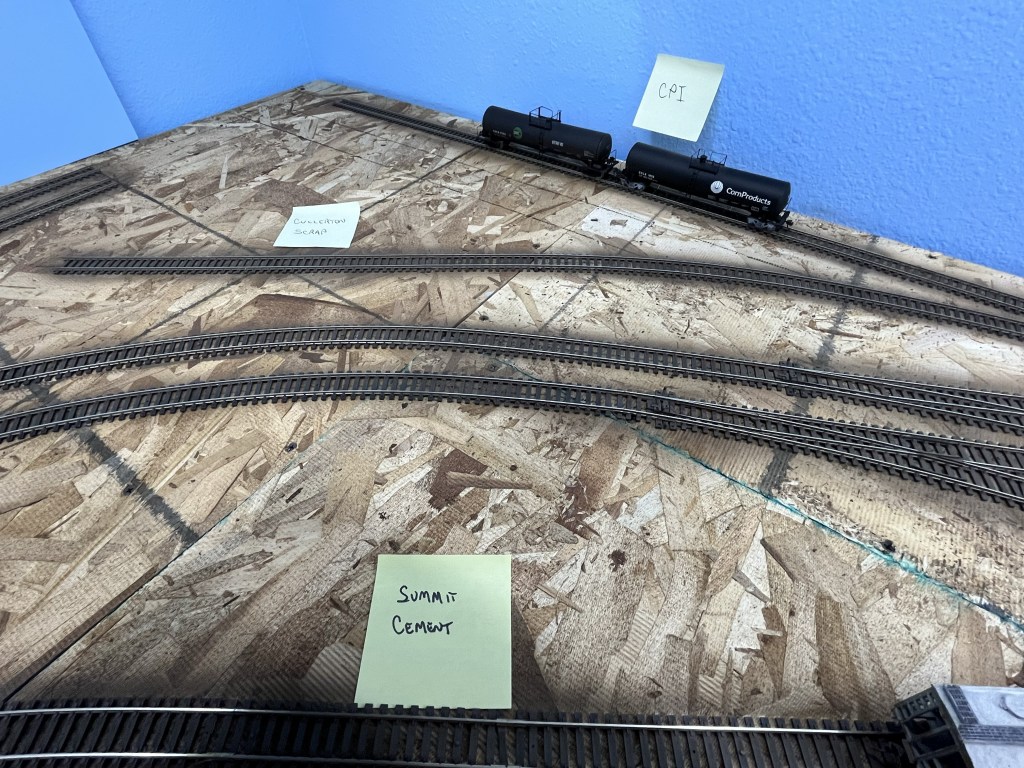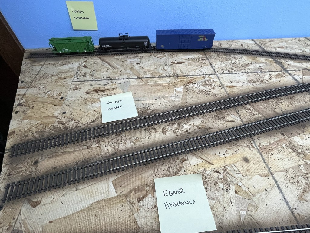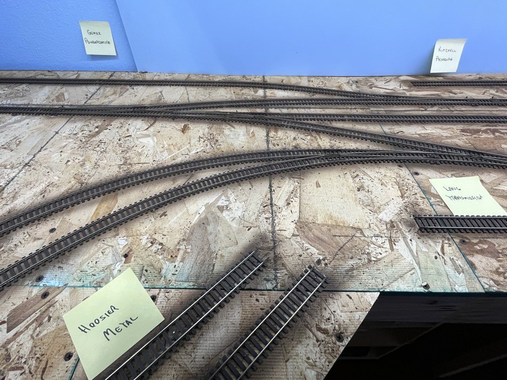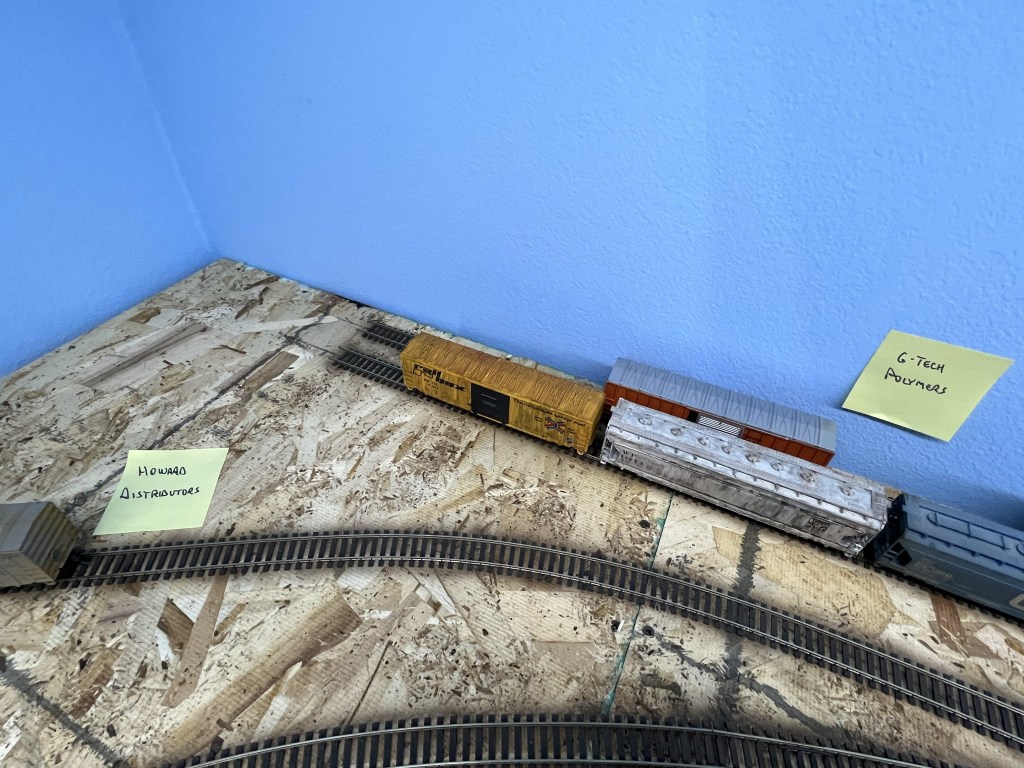 Using PostIt notes, I’ve physically labeled all the industries on the benchwork. Over the last few days, I’ve changed my mind on a few names and swapped tracks for a few types of industries.