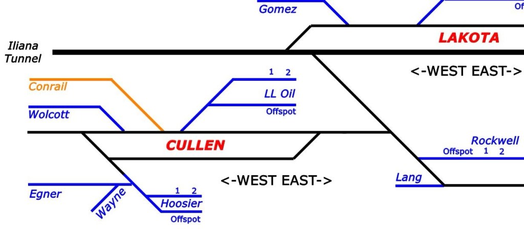 As seen below, Cullen is accessed from the mainline by pulling into the spur at Rockwell then backing into Cullen.