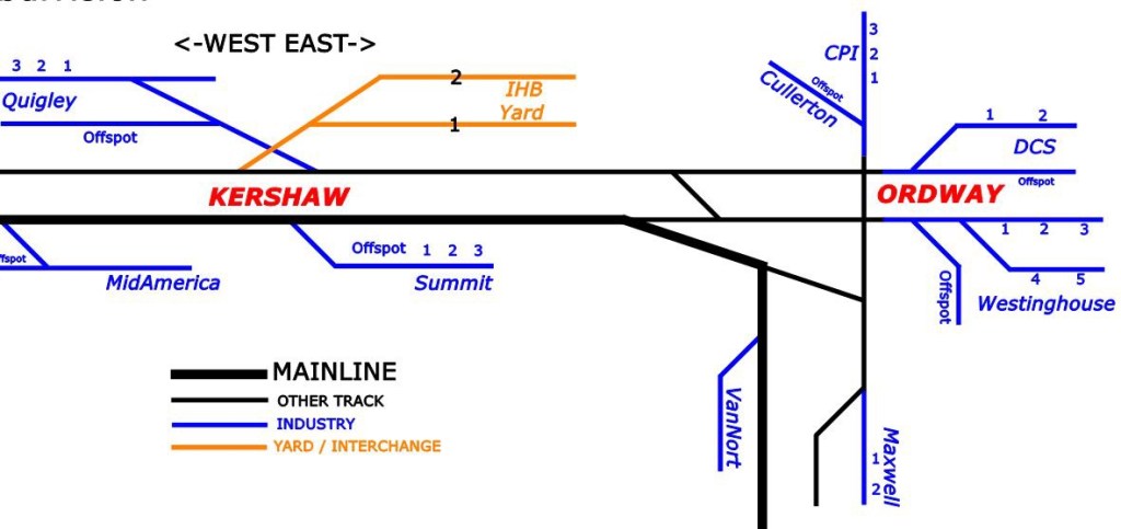Today, I swapped the designations for the IHB Yard and Westinghouse. The new IHB Yard can hold 10 cars and a loco and Westinghouse now has a 6 car capacity.